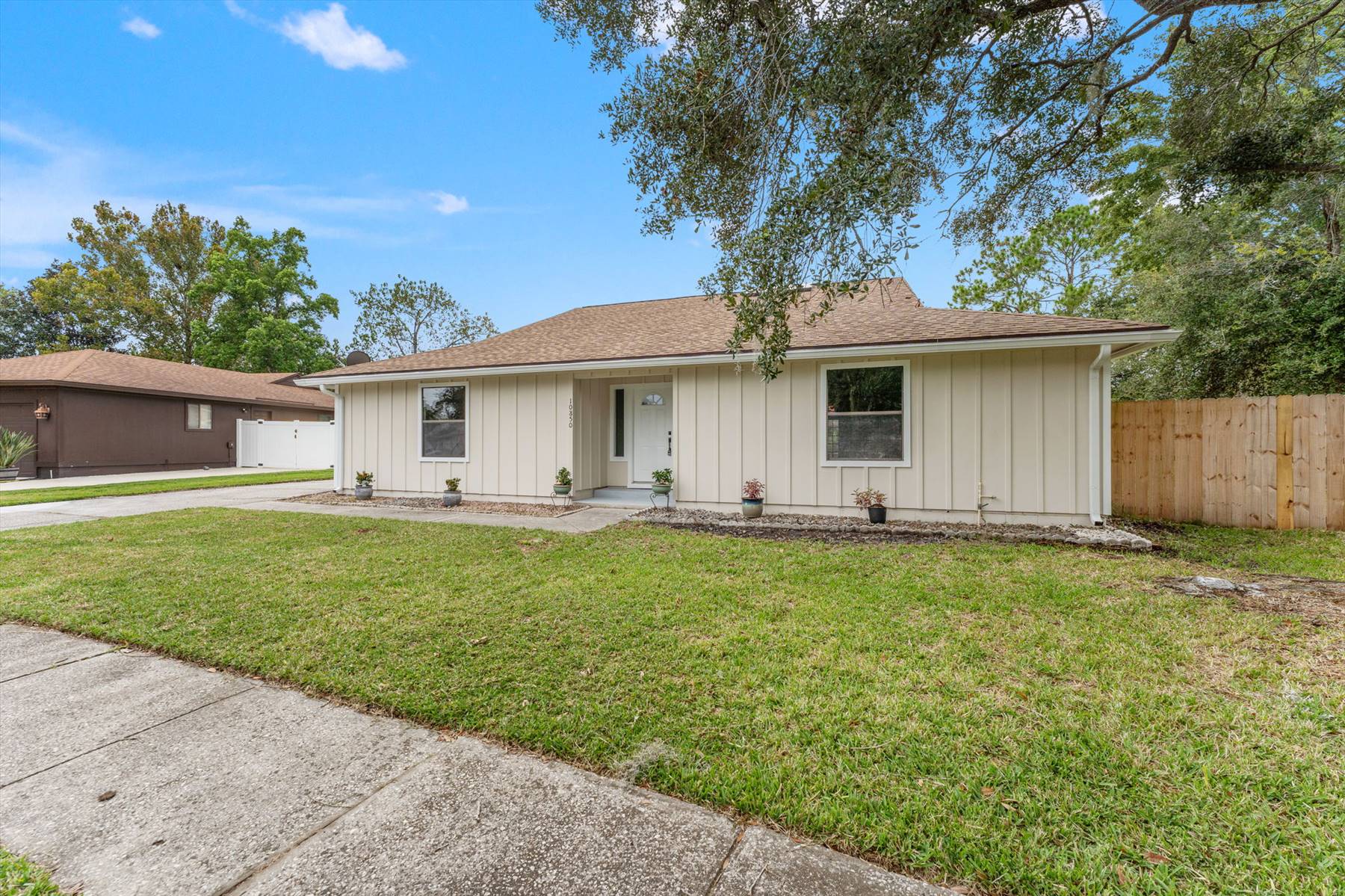 Welcome to 10850 Mandarin Station Dr W, a fully renovated 4-bedroom, 2-bath home in the heart of Mandarin. With 2,269 sq ft on nearly half an acre. This house has AC 2021, roof 2024, plumbing 2025, plus $0 HOA for easy living. Inside, you’ll find a bright open layout with an elegant electric fireplace, updated kitchen with stylish finishes, and a primary suite retreat. Three additional bedrooms provide versatility for guests, office, or hobbies. Step outside to a large backyard featuring landscaping, a big shed for storage or workshop use, and a detached garage. A wide driveway offers ample parking for multiple vehicles. Every detail has been refreshed, making this home move-in ready. Nestled in the desirable Mandarin Station neighborhood, you’ll enjoy the quiet setting with convenient access to schools, shopping, dining, and major highways. Don’t miss this rare opportunity to own a beautifully updated home with exceptional indoor and outdoor features schedule your showing today.